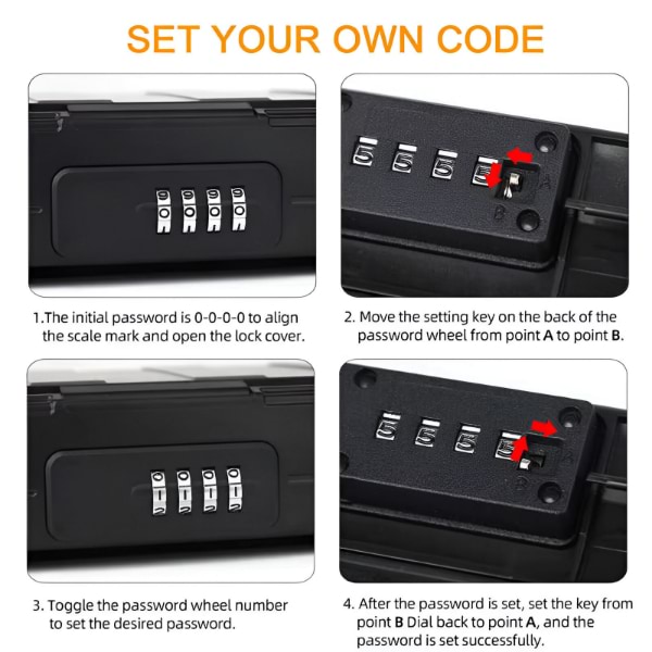 🔒 Kutija za zaključavanje putnog sefa nudi sigurnost otpornu na udarce, vodootpornu sa pouzdanom kombinovanom bravom sa 4 cifre za potpuni mir.